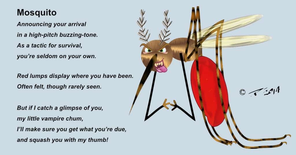 But I can’t bring myself to like them. In fact I loathe them. Perhaps it’s the irritating sound they make or because they carry disease. Or maybe it’s my inability to square their paradoxical position in the order of things – they’re at the bottom of the food chain – yet they feed on us – at the top of the food chain. But most likely it’s because they like to bite me and those bites are so annoyingly itchy for days afterwards…