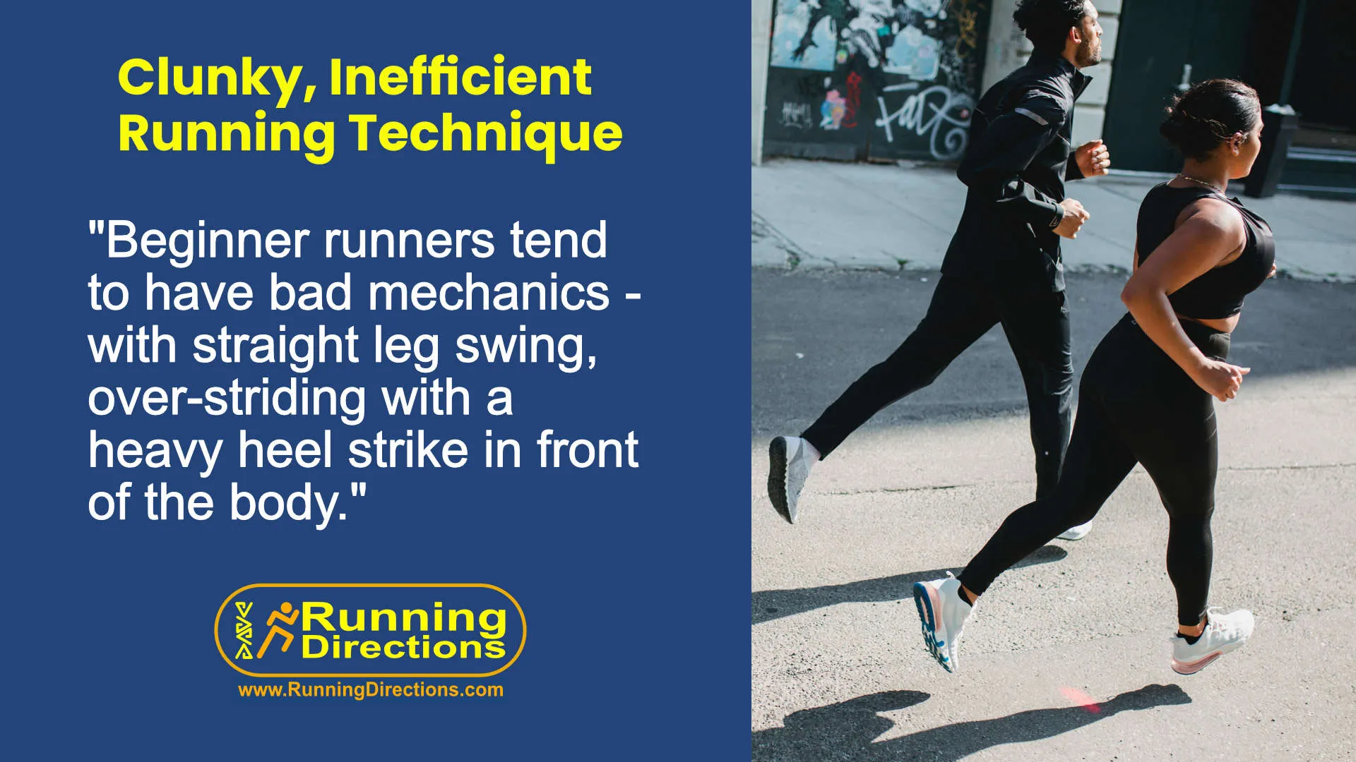 - No information or guidance on good running technique. In my experience, most people that start running after a long period of being sedentary, approach running as an extension of walking and their run becomes a sort of fast walk. This leads to bad mechanics with straight leg swing, over-striding with a heavy heel strike in front of the body. This technique is clunky, inefficient and can potentially lead to injury. As it does not utilise the bodies in-built shock absorption systems and instead the ground impact forces are transmitted straight from the heels to the hips - ouch!