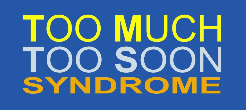 TMTS (Too Much Too Soon) Syndrome is a guaranteed recipe for disaster in virtually every endeavour known to man (a little too dramatic? – I don’t think so). And you haven’t heard of it before because I invented the term by adding syndrome to a well known phrase. Anyway let’s put this in the perspective of running and injury.