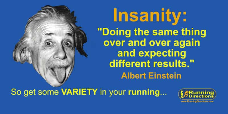 So think about your running and consider ways to inject some variety into it. If you usually run in the daytime, try a night run. If you normally run exclusively on roads, try a trail run. If you always run slow, do some faster paced runs. You will thank me for it – It will make you a fitter and better runner.